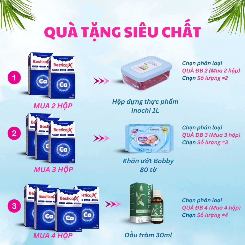– Canxi sinh học Bestical X giúp bổ sung canxi, magie, vitamin D3 và vitamin K2-MK7 cho cơ thể