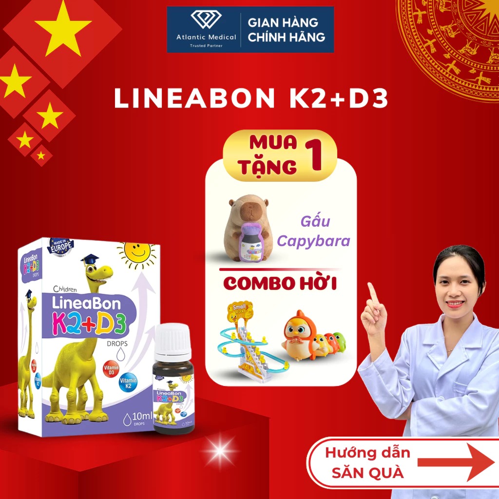 [Quà Xinh] LineaBon D3 K2 MK7 Hỗ Trợ Hấp Thu Canxi Giúp Bé Cao Lớn Khỏe Mạnh Lọ 10ml