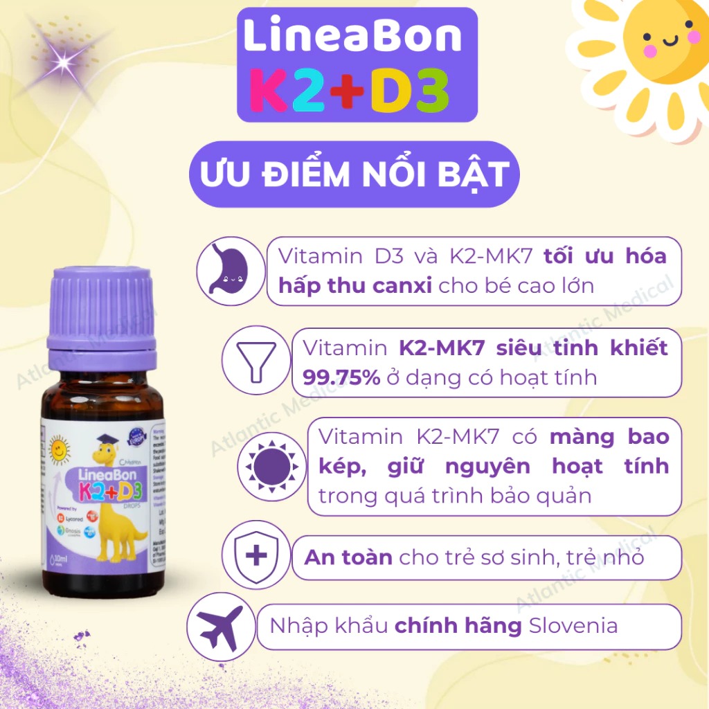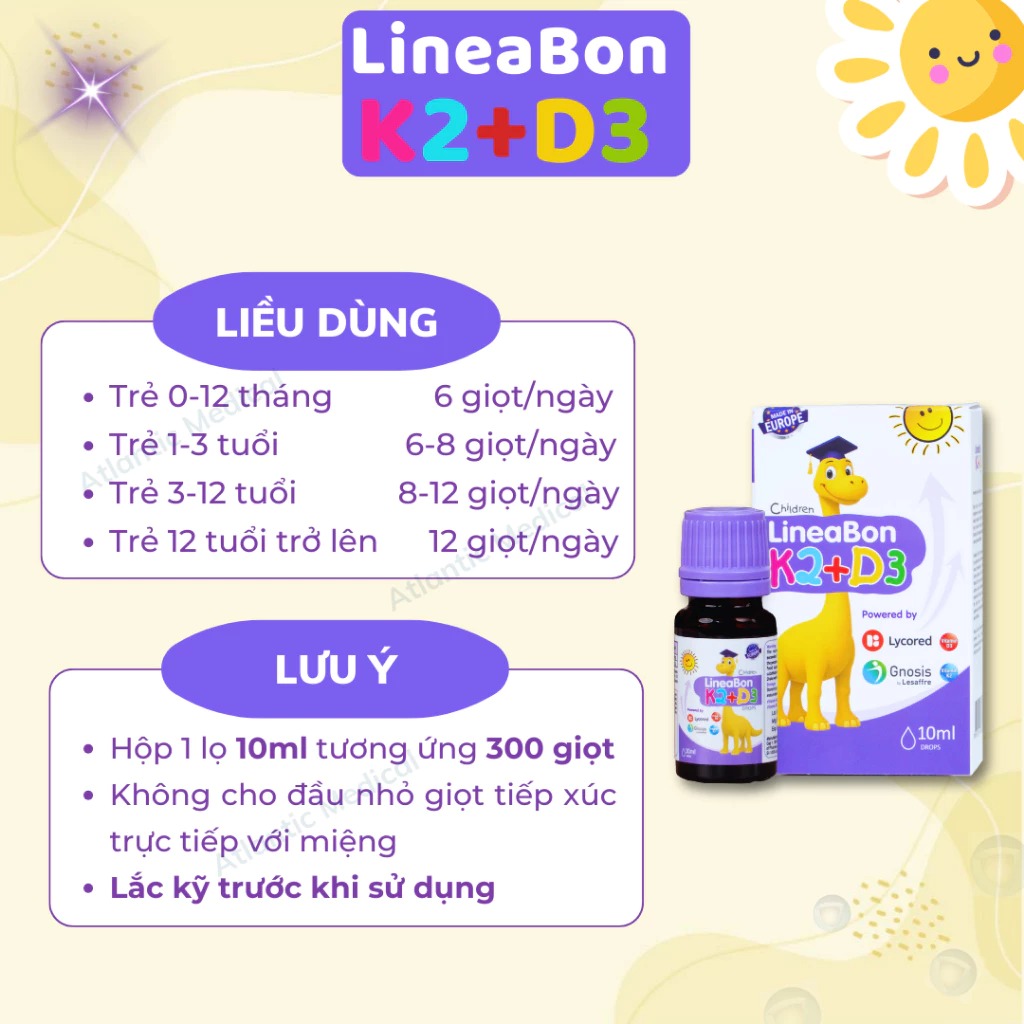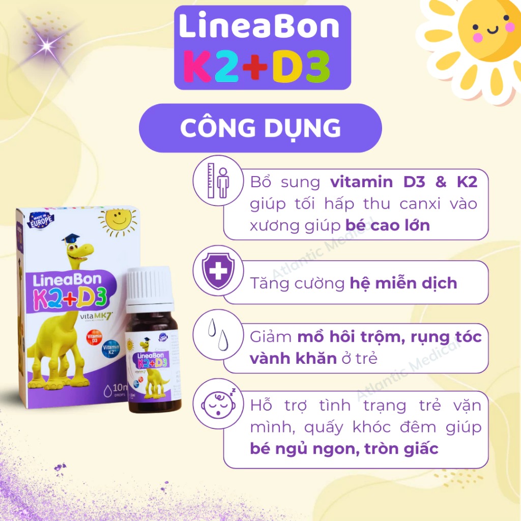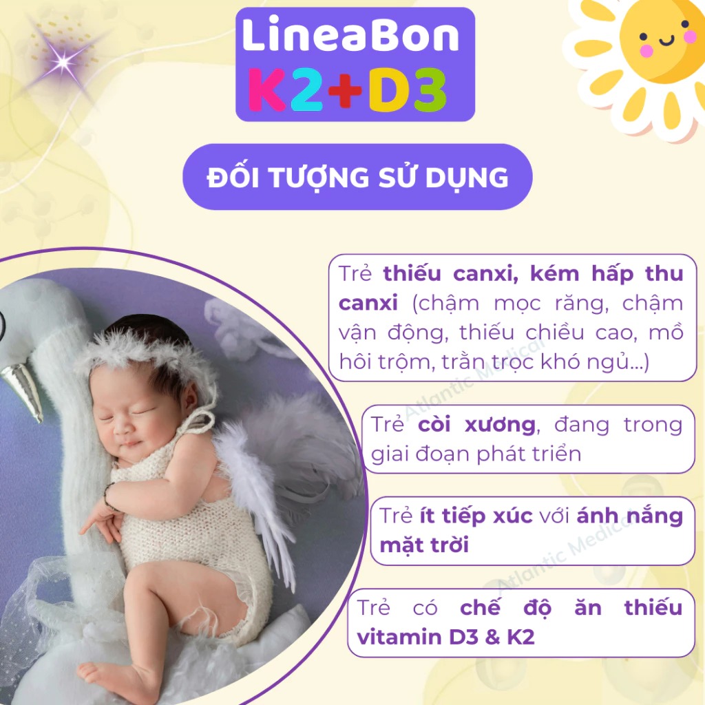 – LineaBon D3 K2 hỗ trợ tốt cho sức khỏe xương, răng của trẻ nhỏ